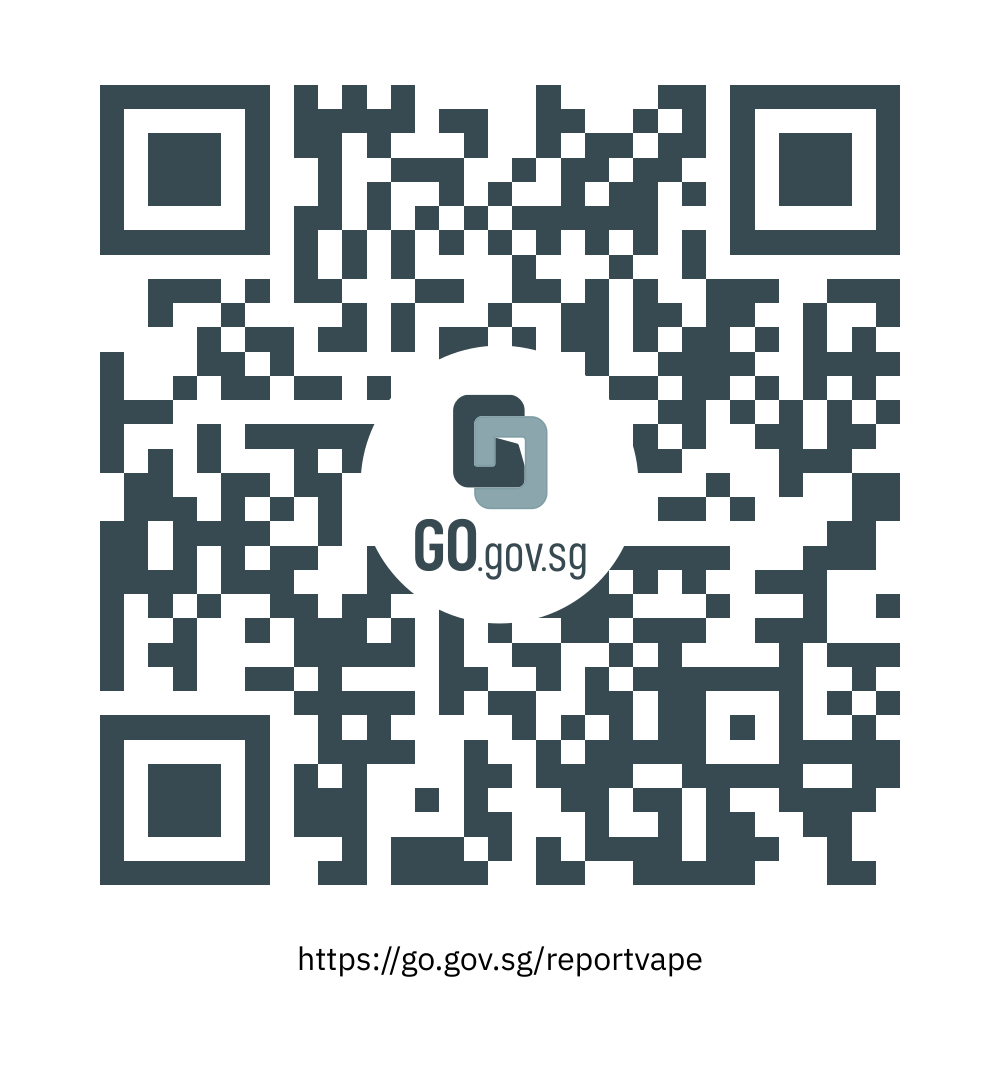 - Submit information through our online reporting form: www.go.gov.sg/reportvape or scan the QR code: