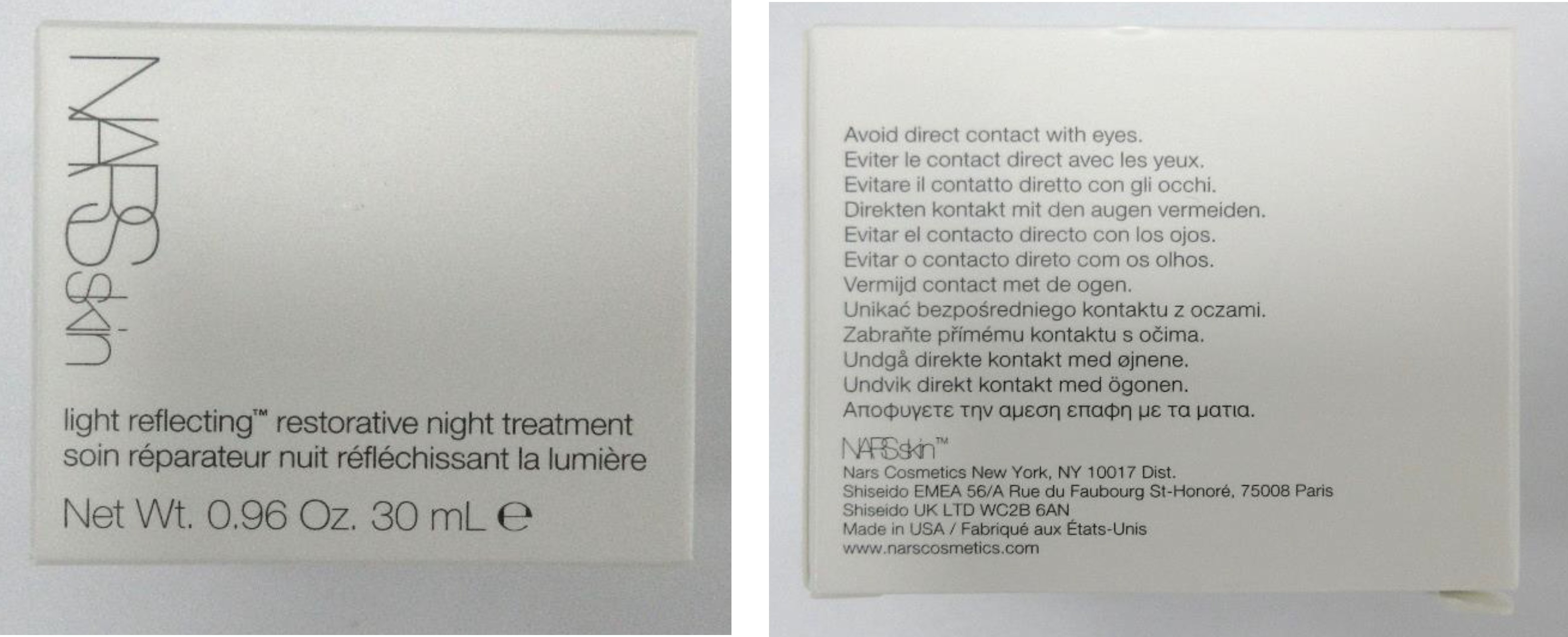 Retail-level recall of all batches of NARSskin light reflecting restorative night treatment due to Sudan IV detected